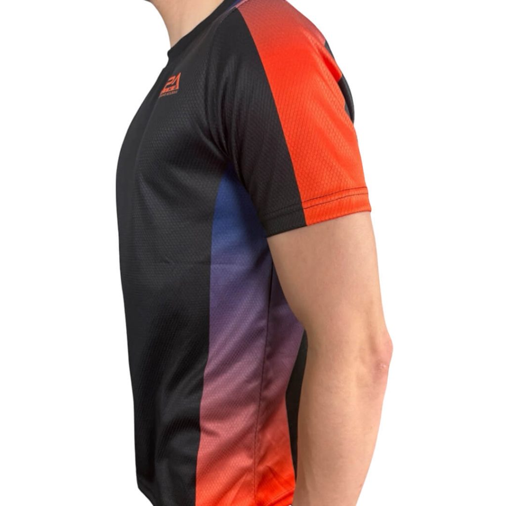 This sleek black base with fluorescent orange and blue makes you want to push harder, stand out, and own the track.